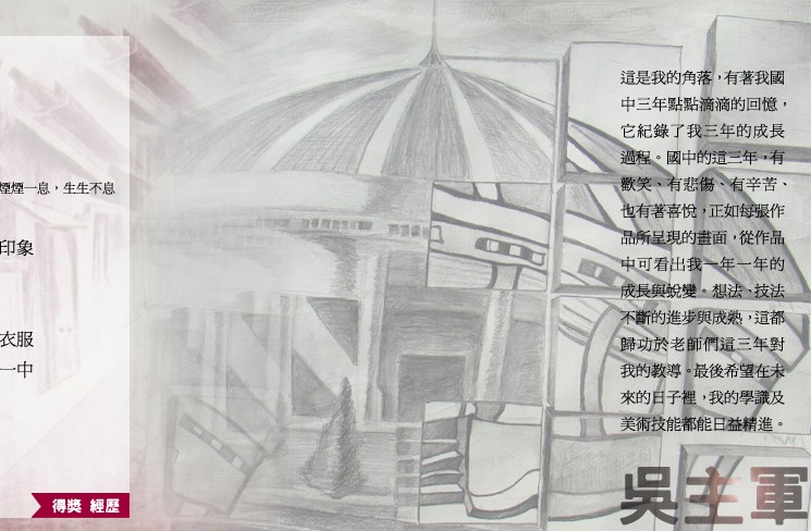 98年畢業美展平面設計類-第三名、96平交道安全宣導壁報-第三名、95年畫我美好家園繪畫比賽-佳作